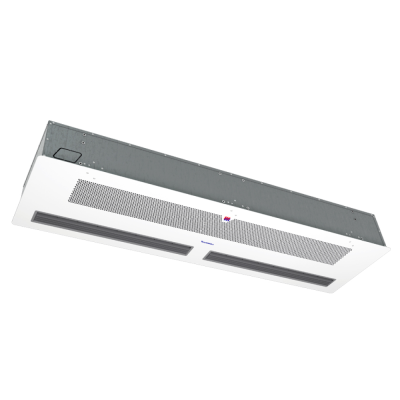 Встраиваемая потолочная воздушно-тепловая завеса для проёмов высотой до 3,5 метров. Тепловая завеса предназначена для скрытой установки за подвесным потолком. Сервис и обслуживание осуществляется через переднюю панель завесы.