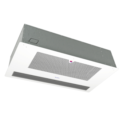 Встраиваемая потолочная воздушно-тепловая завеса для проёмов высотой до 4,5 метров. Тепловая завеса предназначена для скрытой установки за подвесным потолком. Сервис и обслуживание осуществляется через переднюю панель завесы.