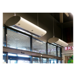 Интерьерная тепловая завеса Эллипс Бриллиант для проемов высотой до 3,5 метров. Благодяря верхнему всасыванию воздуха, передняя панель завес из нержавеющей стали остается всегда чистой.
