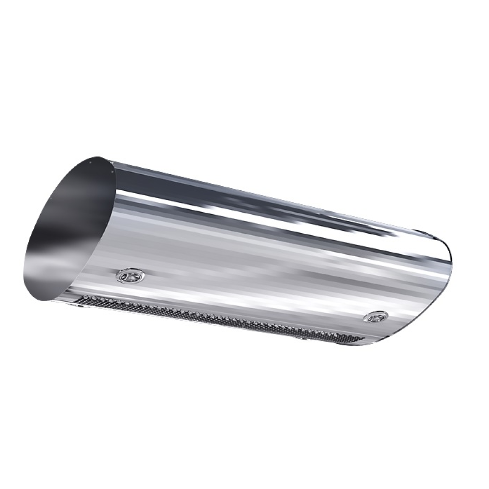 Интерьерная тепловая завеса Эллипс Бриллиант для проемов высотой до 3,5 метров. Благодяря верхнему всасыванию воздуха, передняя панель завес из нержавеющей стали остается всегда чистой.